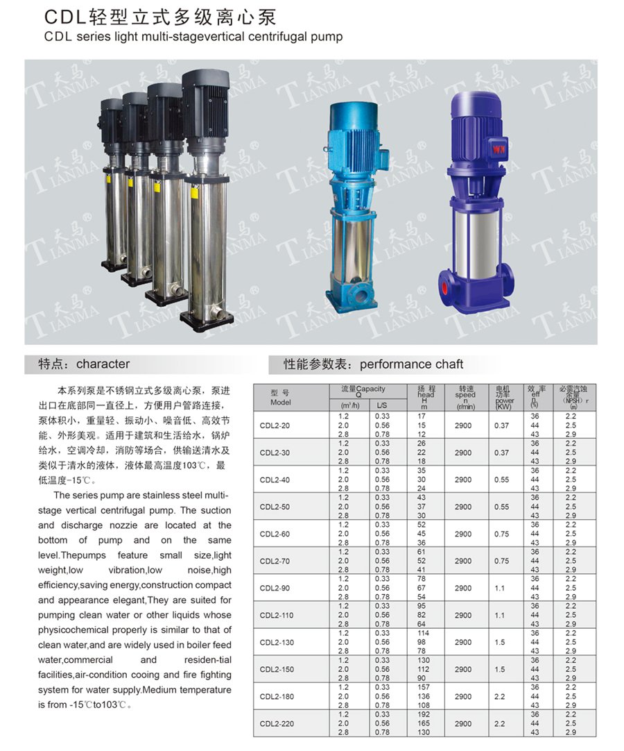 CDL輕型立式多級離心泵 質量穩定:實行全過程質量監控,多方位檢測! 合理的價格:有效的內部成本控制,減少開支,為客戶著想! 交貨快:完善的生產線,充足的庫存,縮短交貨時間! TEL:0550-7029888 FAX:0550-7029688 EMAIL:987655188@qq.com